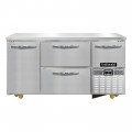 Undercounter Freezer Base, 60"W, stainless steel front & end panels, stainless steel top, aluminum interior, (2) drawers hold (2) 12 x 20 x 6 pans per drawer (supplied by others), (2) narrow drawers hold (1) 12 x 20 x 6 pan per drawer (supplied by others) & (1) half height field rehingeable door, electronic control, off-cycle defrost, (8) 1-3/8" diameter plate casters mounted on heavy-duty support plates (easily field installed), 1/2 HP, R290 hydrocarbon refrigerant, front breathing, side-mounted refrigeration, cETLus, NSF