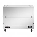 Milk Cooler, 49" long, dual access, cold wall cooling, (12) 13" x 13" x 11" or (8) 19" x 13" x 11" crate capacity, door cylinder security locks, electronic control with digital display, hi-low alarm, hi/low temperature alarm, stainless steel interior & exterior, floor drain, (4) 5" swivel casters with front locking brakes,R290 Hydrocarbon refrigerant, 1/3 HP, cETLus, NSF