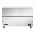 Milk Cooler, 58" long, dual access, cold wall cooling, (16) 13" x 13" x 11" or (10) 19" x 13" x 11" crate capacity, door cylinder security locks, electronic control with digital display, hi-low alarm, hi/low temperature alarm, stainless steel interior & exterior, floor drain, (4) 5" swivel casters with front locking brakes, R290 Hydrocarbon refrigerant, 1/3 HP, cETLus, NSF