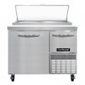 Pizza Prep Table, 43"W, one-section, 12.0 cu ft capacity, forced air, 300 series stainless steel work top with 19" poly cutting board, (1) full & (1) half height field rehingeable doors, hot gas condensate evaporator, stainless steel front & end panels, aluminum interior, electronic control, off cycle defrost, side-mounted refrigeration, reversing condenser fan, R290 Hydrocarbon refrigerant, 1/4 HP, cETLus, NSF