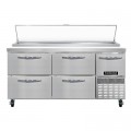 Pizza Prep Table, 68"W, two-section, 22.0 cu ft capacity, forced air, 300 series stainless steel work top with 19" poly cutting board, (4) drawers hold (2) 12 x 20 x 6 pans per drawer (supplied by others), (1) half-height field rehingeable door, hot gas condensate evaporator, stainless steel front & end panels, aluminum interior, electronic control, off cycle defrost, side-mounted refrigeration, reversing condenser fan, R290 Hydrocarbon refrigerant, 1/3 HP, cETLus, NSF