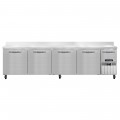 Refrigerated Base Worktop Unit, 118"W, 300 series stainless steel work top with 6"H backsplash, stainless steel front & end panels, galvanized steel rear & grill, aluminum interior, (4) full & (1) half height field rehingeable doors, electronic control, off cycle defrost, R290 Hydrocarbon refrigerant, 1/4 HP, side-mounted refrigeration, cETLus, NSF, ENERGY STAR®