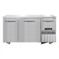 Undercounter Shallow Depth Refrigerated Base, 60"W, stainless steel front & end panels, stainless steel top, aluminum interior, (2) full & (1) half height field rehingeable doors, electronic control, off cycle defrost, (8) 1-3/8" diameter plate casters mounted on heavy-duty support plates (easily field installed), 1/4 HP, front breathing, side-mounted refrigeration, R290 hydrocarbon refrigerant, cETLus, NSF