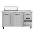 Refrigerated Base Shallow Depth Sandwich Unit, 60"W, 300 series stainless steel top with (8) 1/6 size x 4" deep pans, stainless steel front & sides, galvanized steel case back, aluminum interior, 10" deep nylon cutting board, (2) full & (1) half height field rehingeable doors, electronic control, off cycle defrost, hot gas condensate evaporator, 1/3 HP, side-mounted refrigeration, R290 Hydrocarbon refrigerant, cETLus, NSF
