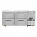 Undercounter Refrigerated Base, 68"W, stainless steel front & end panels, stainless steel top, aluminum interior, (4) drawers & (1) half height field rehingeable door, electronic control, off cycle defrost, (8) 1-3/8" diameter plate casters mounted on heavy-duty support plates (easily field installed), 1/4 HP, front breathing, side-mounted refrigeration, R290 hydrocarbon refrigerant, cETLus, NSF