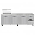 Refrigerated Base Sandwich Unit, 93"W, 300 series stainless steel (Mighty) top with (12) 1/6 size x 4" deep pans, stainless steel front & sides, galvanized steel case back, aluminum interior, 10" deep nylon cutting board, (3) full & (1) half height field rehingeable doors, electronic control, off cycle defrost, hot gas condensate evaporator, 1/3 HP, side-mounted refrigeration, R290 Hydrocarbon refrigerant, cETLus, NSF