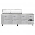 Refrigerated Base Sandwich Unit, 93"W, 300 series stainless steel (Mighty) top with (27) 1/6 size x 4" deep pans, stainless steel front & sides, galvanized steel case back, aluminum interior, 10" deep nylon cutting board, (6) drawers - top drawers hold (1) 12" x 20" + (3) 1/6 pans each & Bottom drawers holds (2) 12" x 20" pans each, (1) half height field rehingeable door, electronic control, off cycle defrost, hot gas condensate evaporator, 1/3 HP, side-mounted refrigeration, R290 Hydrocarbon refrigerant, cETLus, NSF