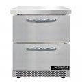 Work Top Refrigerator, Front Breather, 27"W, 7.4 cu ft capacity, one-section, stainless steel flat top, (2) drawers, accommodates (1) 12 x 20 x 6 pan per drawer (supplied by others), stainless steel front & end panels, aluminum interior, 3-3/4" casters, rear mounted self-contained refrigeration, R290 Hydrocarbon refrigerant, 1/5 hp, cETLus, NSF