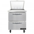 Mighty Top Sandwich Unit, 27"W, 7.4 cu ft capacity, one-section, (12) 1/6 size x 4" deep pans with 8" cutting board, (2) drawers, accommodates (1) 12 x 20 x 6 pan per drawer (supplied by others), stainless steel top, front & end panels, aluminum back & interior, rear mounted self-contained refrigeration, automatic hot gas condensate evaporator, R290 hydrocarbon refrigerant, 1/5 hp, cETLus, NSF