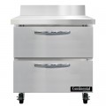 Work Top Refrigerator, 32"W, 9.0 cu ft capacity, one-section, stainless steel top with 5-1/2"H backsplash, (2) drawers, accommodates (1) 12 x 20 x 6 pan per drawer or (1) 1/2 x 6 pan & (2) 1/3 x 6 pans per drawer capacity (supplied by others), stainless steel front & end panels, aluminum interior, rear mounted self-contained refrigeration, R290 Hydrocarbon refrigerant, 1/5 hp, cETLus, NSF