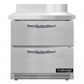 Work Top Refrigerator, Front Breather, 32"W, 9.0 cu ft capacity, one-section, stainless steel top with 5-1/2"H backsplash, (2) drawers, accommodates (1) 12 x 20 x 6 pan per drawer or (1) 1/2 x 6 pan & (2) 1/3 x 6 pans per drawer capacity (supplied by others), stainless steel front & end panels, aluminum interior, 3-3/4" casters, rear mounted self-contained refrigeration, R290 Hydrocarbon refrigerant, 1/5 hp, cETLus, NSF