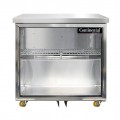 Undercounter Display Refrigerator, 32"W, 9.0 cu ft capacity, one-section, (1) glass door, LED interior lighting, stainless steel front, top & end panels, aluminum interior, 1-3/8" diameter plate casters, front breathing, rear-mounted self-contained refrigeration, R290 Hydrocarbon refrigerant, 1/5 hp, cETLus, NSF