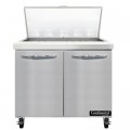 Mighty Top Sandwich Unit, 36"W, 10.3 cu ft capacity, two-section, (15) 1/6 size x 4" deep pans with 8" cutting board, (2) field rehingeable doors, stainless steel top, front & end panels, aluminum back & interior, rear mounted self-contained refrigeration, automatic hot gas condensate evaporator, R290 hydrocarbon refrigerant, 1/5 hp, cETLus, NSF