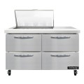 Mighty Top Sandwich Unit, 48"W, 13.4 cu ft capacity, two-section, (12) 1/6 size x 4" deep pans with 8" cutting board, (4) drawers, accommodates (1) 12 x 18 x 6 pan per drawer or (1) 1/2 x 6 pan & (1) 1/3 x 6 pans per drawer capacity (supplied by others), stainless steel top, front & end panels, aluminum back & interior, rear mounted self-contained refrigeration, automatic hot gas condensate evaporator, R290 hydrocarbon refrigerant, 1/4 hp, cETLus, NSF