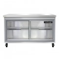 Work Top Display Refrigerator, 48"W, 13.4 cu ft capacity, two-section, stainless steel flat top, (2) sliding glass doors, LED interior lighting, stainless steel front & end panels, aluminum interior, rear mounted self-contained refrigeration, R290 Hydrocarbon refrigerant, 1/4 HP, cETLus, NSF