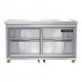 Undercounter Display Refrigerator, 48"W, 13.4 cu ft capacity, two-section, (2) sliding glass doors, LED lighting, stainless steel front, top & end panels, aluminum interior, 1-3/8" diameter plate casters, front breathing, rear-mounted self-contained refrigeration, R290 Hydrocarbon refrigerant, 1/4 HP, cETLus, NSF