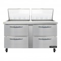 Mighty Top Sandwich Unit, 60"W, 17.0 cu ft capacity, two-section, (24) 1/6 size x 4" deep pans with 8" cutting board, (4) drawers, accommodates (1) 12 x 20 x 6 pan per drawer (supplied by others), stainless steel top, front & end panels, aluminum back & interior, rear mounted self-contained refrigeration, automatic hot gas condensate evaporator, R290 hydrocarbon refrigerant, 1/3 HP, cETLus, NSF