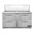 Mighty Top Sandwich Unit, Front Breather, 60"W, 17.0 cu ft capacity, two-section, (24) 1/6 size x 4" deep pans with 8" cutting board, (4) drawers, accommodates (1) 12 x 20 x 6 pan per drawer (supplied by others), stainless steel top, front & end panels, aluminum back & interior, 3-3/4" casters, rear mounted self-contained refrigeration, automatic hot gas condensate evaporator, R290 hydrocarbon refrigerant, 1/3 HP, cETLus, NSF