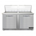 Mighty Top Sandwich Unit, Front Breather, 60"W, 17.0 cu ft capacity, two-section, (24) 1/6 size x 4" deep pans with 8" cutting board, (2) field rehingeable doors, stainless steel top, front & end panels, aluminum back & interior, 3-3/4" casters, rear mounted self-contained refrigeration, automatic hot gas condensate evaporator, R290 hydrocarbon refrigerant, 1/3 HP, cETLus, NSF