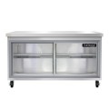 Work Top Display Refrigerator, 60"W, 17.0 cu ft capacity, two-section, stainless steel flat top, (2) sliding glass doors, LED interior lighting, stainless steel front & end panels, aluminum interior, rear mounted self-contained refrigeration, R290 Hydrocarbon refrigerant, 1/4 HP, cETLus, NSF
