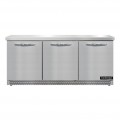 Work Top Refrigerator, Front Breather, 72"W, 20.6 cu ft capacity, three-section, stainless steel flat top, (3) field rehingeable doors, stainless steel front & end panels, aluminum interior, 3-3/4" casters, rear mounted self-contained refrigeration, R290 Hydrocarbon refrigerant, 1/5 HP, cETLus, NSF, ENERGY STAR®