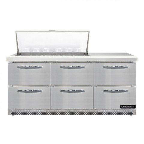 Continental RefrigeratorContinental Refrigerator SW72N18M-FB-D Refrigerated Counter, Mega Top Sandwich / Salad Unit