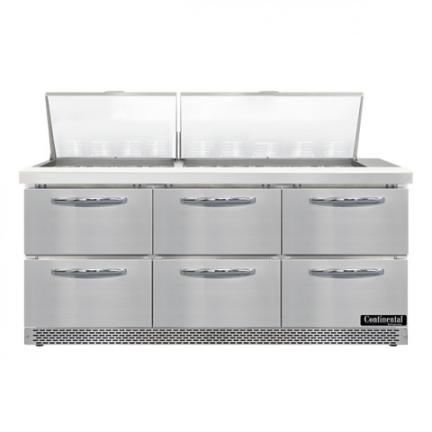 Continental RefrigeratorContinental Refrigerator SW72N27M-FB-D Refrigerated Counter, Mega Top Sandwich / Salad Unit