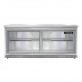 Work Top Display Refrigerator, Front Breather, 72"W, 20.6 cu ft capacity, three-section, (2) sliding glass doors, LED interior lighting, stainless steel front & end panels, aluminum interior, 3-3/4" casters, rear mounted self-contained refrigeration, R290 Hydrocarbon refrigerant, 1/4 HP, cETLus, NSF