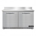 Work Top Freezer, Front Breather, 48"W, 13.4 cu ft capacity, two-section, stainless steel top with 5-1/2"H backsplash, (2) field rehingeable doors, stainless steel front & end panels, aluminum interior, 3-3/4" casters, rear mounted self-contained refrigeration, R290 Hydrocarbon refrigerant, 1/2 HP, cETLus, NSF