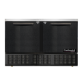 Undercounter Refrigerator, shallow depth, 48"W, 7 cu. ft. capacity, two section, (2) field rehingable doors, front breathing, rear mounted self-contained refrigeration, stainless top, baked black enamel finish exterior, aluminum interior, 5" diameter caster plates, R290 Hydrocarbon refrigerant, 1/5hp, cETLus, NSF