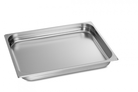 GN 2/3 Pans, 2-1/2” (65mm) deep, unperforated, stainless steel