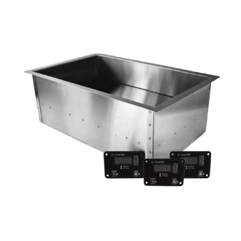 (IHW061-64) SinAqua™ Induction Hot Food Well, drop-in, rectangular, 4" deep, accommodates gastronorm or standard hotel pans (any standard magnetic pan), half pans: (1) 1/1, (3) 1/3 or (6) 1/6, (3) separate control panels per unit, (4) standard temperature settings, automatic timer, spring loaded sealed temperature sensor, microprocessor, automatic pan detection, red LED display, lock feature, PPS/aluminum construction, 1800 watts,100-125v/50/60/1-ph, 15.0 amps, cord, NEMA 5-15P, cETLus, NSF, CE, Made in USA