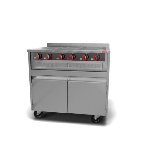 (Coming soon) (VIC-9600-1) Six Hob, (6) independent induction cook zones for precise, efficient heating of any induction-compatible pan, built-in redundancy ensures uninterrupted performance, allowing each zone to operate independently, designed for back-of-the- house applications, includes a high-impact glass-ceramic cooktop, an automatic shut-off feature, integral cooling fans, and a self-diagnosing microprocessor for a safer and more reliable kitchen environment, hardwired, 58.3amps, 3500W/hob, 200-240V/3-ph (contact factory for pricing)