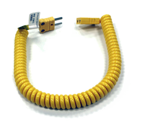 Extension Cable, coiled retractable cable, 48" extended, 12" retracted, J, K or T type available, T made to order, 176°F (80°C) max cable temperature, polyurethane outer jacket, (1.2m) extended (305mm) retracted (T MTO) (Atkins)