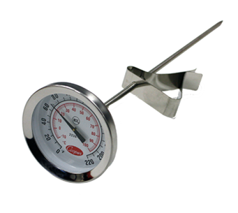 Pocket Thermometer, steam table/sauce, recalibratable 2" (5cm) dia. dial with 8" (20.3cm) stem and vessel clip, temperature range 0 to 220°F (-10 to 100°C), ±2°F (±1°C) temperature accuracy, NSF (36 master carton) (Cooper)