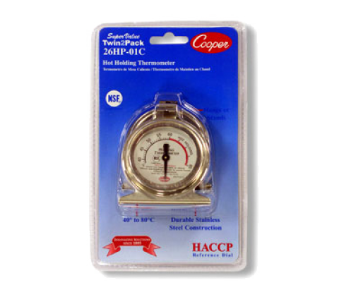 Proofing/Holding Cabinets Thermometer, HACCP reference dial and colored holding zone, temperature range 40 to 80°C, stainless steel, NSF (carded, pack of 2) (36 master carton) (Cooper)