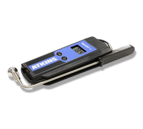AquaTuff™ Waterproof Thermocouple, digital, Wrap&Stow™ angled surface probe, temp. range -100 to 500°F (-73 to 260°C), +2.7°F & -6.3°F (+1.5°C & -3.5°C) on draft-free, flat, oiled surface in ambient temperatures between 68° to 86°F (20° to 30°C) temperature range, auto shut-off, LCD display, ABS plastic housing, 9-3/8" x 2-3/4" x 1-1/3" (238mm x 70mm x 33mm), (2) AAA batteries included, CE, RoHS, NIST, WEEE (Atkins)