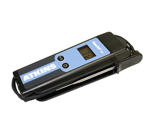 AquaTuff™ Waterproof Thermocouple, digital, with Wrap&Stow™ MicroNeedle™ probe, temp. range -100 to 500°F (-73 to 260°C), ±0.9°F (±0.5°C) total system at ambient temperatures between 68° to 86°F (20° to 30°C) temperature accuracy, auto shut-off, LCD display, ABS plastic housing, 7-1/8" x 2-3/4" x 1-1/3" (181mm x 70mm x 33mm), includes (2) AAA batteries, NSF, CE, RoHS, NIST, WEEE (Atkins)