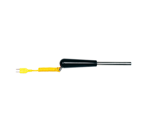 Surface Temperature Probe, ceramic tip, 4" (102mm) shaft length, 7/16" (11mm) shaft and tip dia., -40° to 1202°F/-40° to 650°C temperature range, response time 1 second on oiled surface, 48" (1.2m) extended cable length, 12" (305mm) retracted, Type K (J & T MTO) (Atkins)