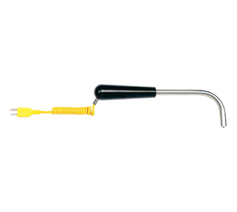 Right Angle Surface Temperature Probe, ceramic tip, 5" (127mm) straight section shaft length, 2-1/2" (66mm) angled section, 7/16" (11mm) shaft and tip dia., -40° to 1202°F/-40° to 650°C temperature range, response time 1 second on oiled surface, 48" (1.2m) extended cable length, 12" (305mm) retracted, Type K (J & T MTO) (Atkins)