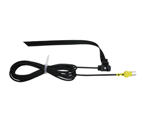 Thermocouple Pipe Strap Probe, temperature range: -25° to 300°F/-32° to 149°C, ±2.5°F/1.4°C, 11" strap length, strap hook, fits pipes up to 3.3" dia. (84 mm), Type K, polyurethane bale material, RoHS (Atkins)