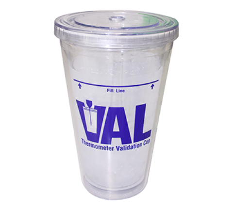 Valcup™ Thermometer Validation Cup, 6-1/4"H, fill line, lid, designed to accurately validate all types of thermometers, imprinted instructions, dishwasher safe, BPA Free, acrylic (12 each per case) (Cooper)