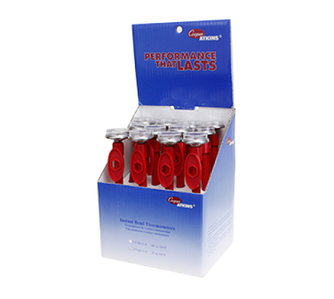 Pocket Test Thermometer, dial type with 5" (12.7cm) shaft, 1" (2.54cm) diameter dial, temperature range 0 to 220°F, ±2°F temperature accuracy, recalibration sheath, with antimicrobial additive, bi-metal (pack of 12) (Cooper)