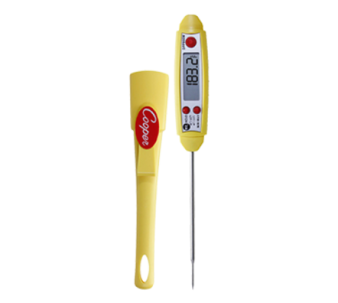 MAX Pocket Test Thermometer, digital type, LCD display, 4" stem length, -40 to 450°F/C temperature capacity, ±1°F/0.5°C from 32° to 212°F (0° to 100°C) temperature accuracy, auto shut-off after 10 minutes, reduced tip, 6 second response time, low battery indicator, waterproof, dishwasher safe, with antimicrobial protective sheath and pocket clip,1.5v/#LR44 battery type included, anti-microbial additive, NSF, CE, RoHS, WEEE (36 master carton) (Cooper)