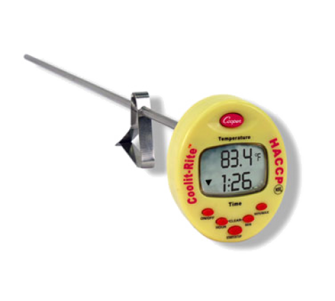 Coolit-Rite™ Cooling Validator, 15" (38.1cm) shaft length, 0.2" (5mm) shaft dia., -4° to 302°F/-20° to 150°C temperature range, temperature accuracy ±2°F, ±3°F above 212°F/±1°C, ±1.5°C above 100°C, response in less than 6 seconds, 6 hour & 59 min. timer range, waterproof, antimicrobial additive, 1.5v LR44 battery, NSF, CE, RoHS, WEEE (6 master carton) (Cooper)