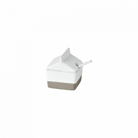 Sugar bowl with spoon, 3" x 3" x H3-1/4", 5-1/8 fl oz, oven safe, microwave safe, dishwasher safe, freezer safe, Ecogres slate, Festa, white, (minimum = case quantity) (1 per case)