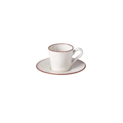 Tea Cup And Saucer, 6-5/8"W x 3"H, 6-1/4 fl oz, oven safe, microwave safe, dishwasher safe, freezer safe, fine stoneware, Beja, white & red, (minimum = case quantity) (6 per case) (SETS UNAVAILABLE - Must order individual components: ATC122-RED - ATP172-RED)