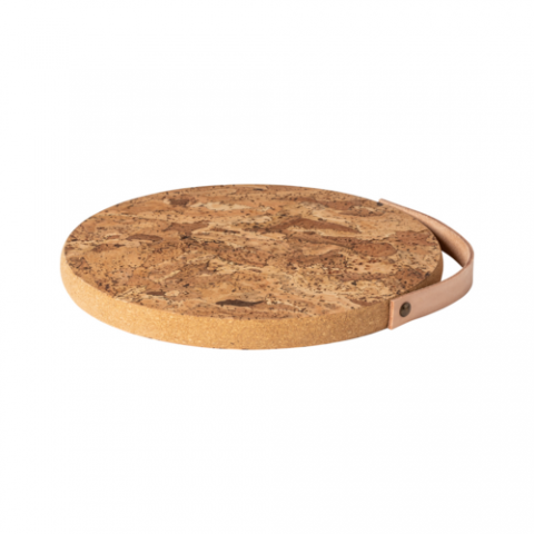 Cork trivet w/ leather handle 25, cork accessories, clean with cloth, Cork, natural, (minimum = case quantity), (warranty not applicable)