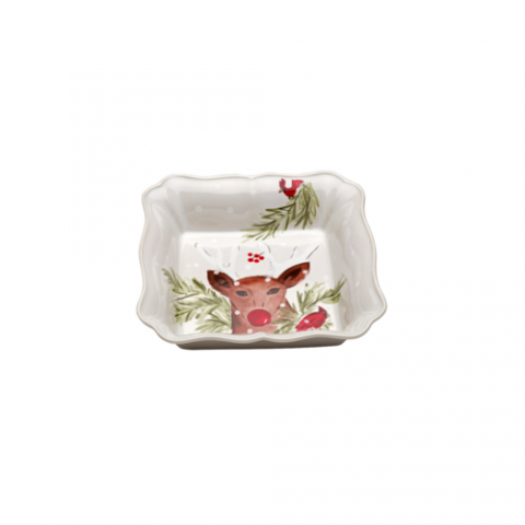 Square baker 25, L 10" x W 10" x H 2 3/8", 59 1/8 fl oz, fine stoneware, oven safe, microwave safe, freezer safe, dishwasher safe, Deer Friends, white df, (minimum = case quantity), (warranty not applicable)