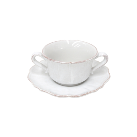 Consomme Cup And Saucer, 7-1/4"W x 2-7/8"H, 12-7/8 fl oz, microwave safe, dishwasher safe, freezer safe, fine stoneware, Impressions, white, (minimum = case quantity) (6 per case) (SETS UNAVAILABLE - Must order individual components: SS171-WHI - SP191-WHI)